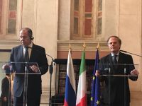 Am Freitag, dem 23. November 2018 um 12.30 Uhr, traf der Minister für Auswärtige Angelegenheiten und internationale Zusammenarbeit Italiens Enzo Moavero Milanesi mit dem russischen Außenminister Sergej Lawrow in der Villa Madama in Rom zusammen.Das Treffen unterstrich die große Herzlichkeit der Beziehungen zwischen Italien und der Russischen Föderation und den Willen Italiens, bei der Auflösung der gegensätzlichen Beziehungen zwischen der Russischen Föderation und der Europäischen Union zunehmend zusammenzuarbeiten. Insgesamt gesehen sind somit die gegenwärtigen bilateralen Beziehungen von „einer Vielzahl offener strategischer Fragen gemeinsamer Interessen geprägt.