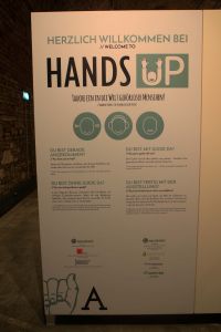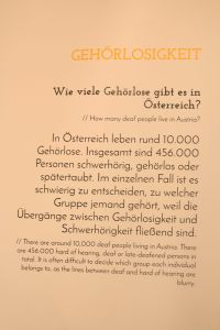Wie es ist gehörlos zu leben, dies kann man jetzt bei der neuen Ausstellung im Schottenstift ausprobieren. Ohne zu sprechen und zu hören, geht man geführt mit einem gehörlosen Guide, durch die Ausstellungsräume. Man lernt dabei Mimik&Körpersprache sowie Gebärdensprache. Haben sie gewusst das rund 10.000 gehörlose Menschen in Österreich leben, sowie Berühmtheiten wie Ludwig Van Beethoven taub wurden, dieses und noch viel mehr kann man bei der Hands Up Ausstellung in Erfahrung bringen. Zudem hatte man gegen Ende der Ausstellung die Möglichkeit auszuprobieren, wie es ist als Gehörloser Musik zu lauschen. Die Ausstellung kann bis 24.8 besucht werden. https://www.handsup.wien/?