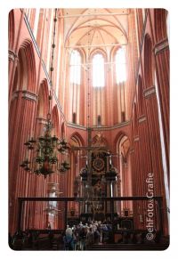 Die Hansestadt Wismar liegt an der Ostseeküste Mecklenburg-Vorpommerns am südlichen Ende der durch die Insel Poel geschützten Wismarer Bucht.Sie ist die sechstgrößte Stadt und das größte der 18 Mittelzentren des Landes Mecklenburg-Vorpommern.Innerhalb weniger Jahre verbreitet sich im Ostseeraum ein Baustil, der wegen seines Baumaterials und seiner architektonischen Formen als „norddeutsche Backsteingotik" in die Geschichte eingegangen ist.Aus Lehm wurde in fleißiger Handarbeit Stein für Stein geknetet, geformt und gebrannt. Aus diesen einfachen gebrannten Mauerziegeln - den Backsteinen - schufen die baufreudigen Bürger trutzige Stadtmauern, stolze, fantasievoll gestaltete Giebelhäuser - und eindrucksvolle Meisterwerke sakraler Backsteingotik: die Hauptkirchen von Wismar.